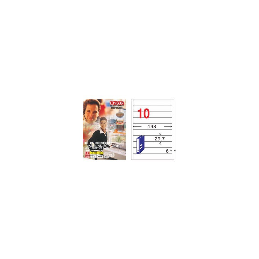 龍德 LD-885-HG-A A4三用電腦標籤 亮面防水相片噴墨材質 白色 29.7x198mm 10格 105 大張
