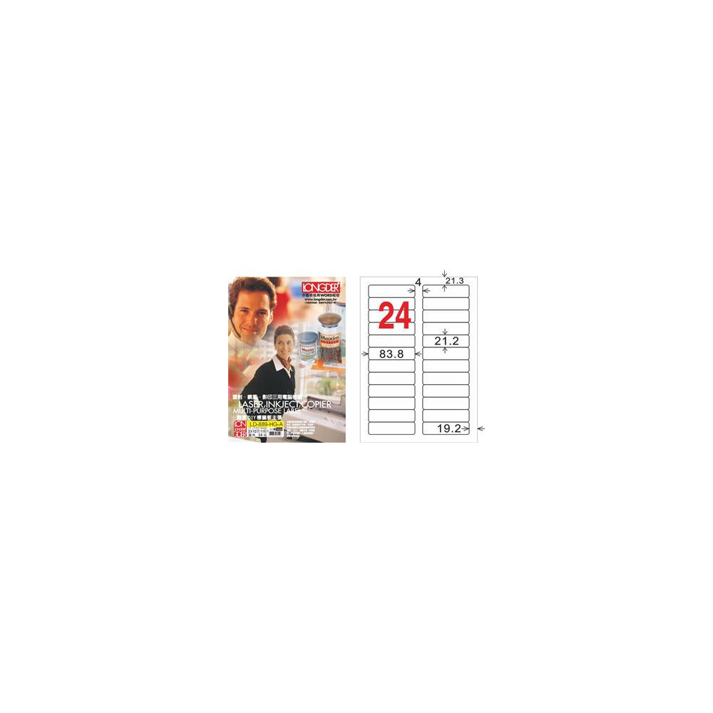 龍德 LD-889-HG-A A4三用電腦標籤 亮面防水相片噴墨材質 白色 21.2x83.8mm 24格 105 大張