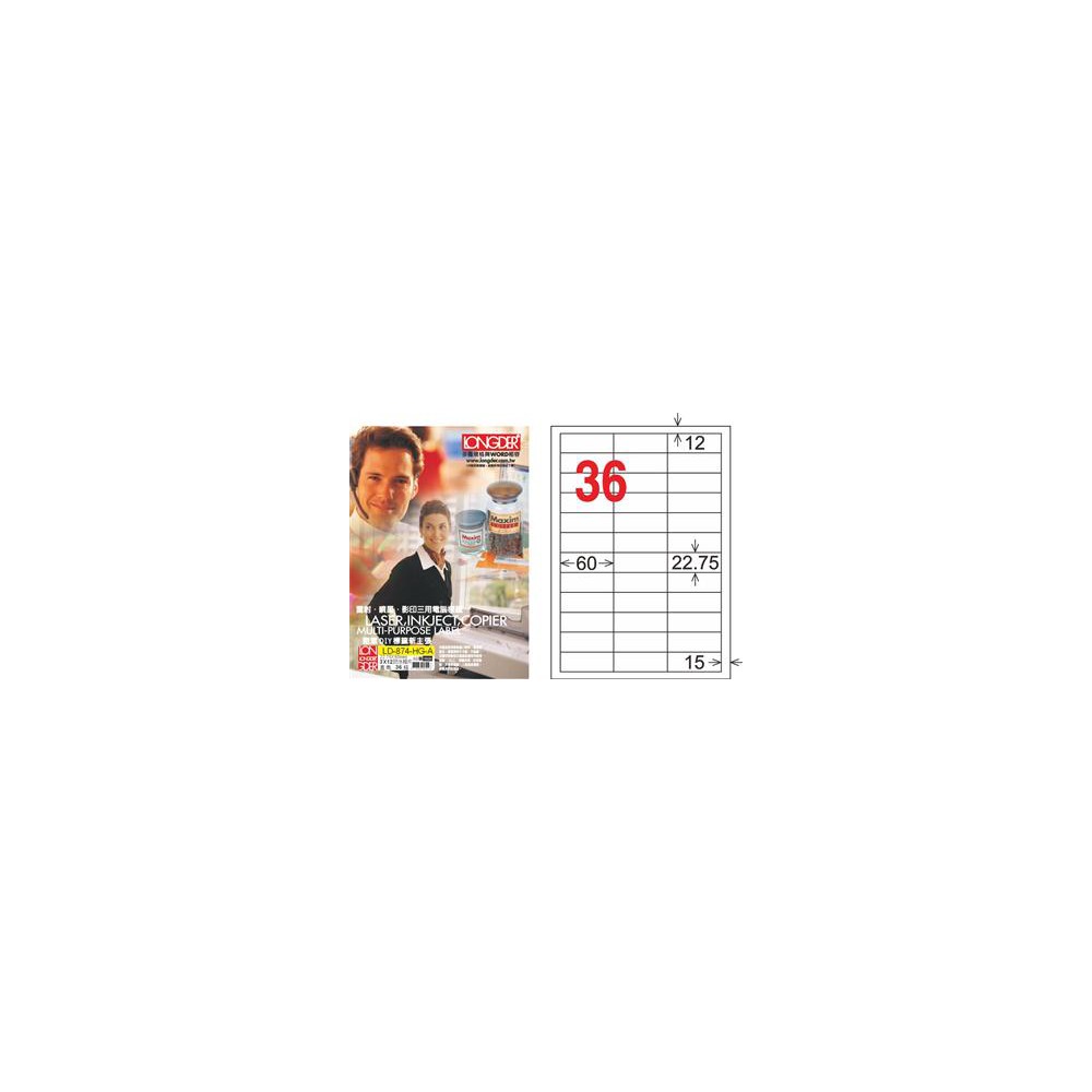 龍德 LD-874-HG-A A4三用電腦標籤 亮面防水相片噴墨材質 白色 22.75x60mm 36格 105 大張