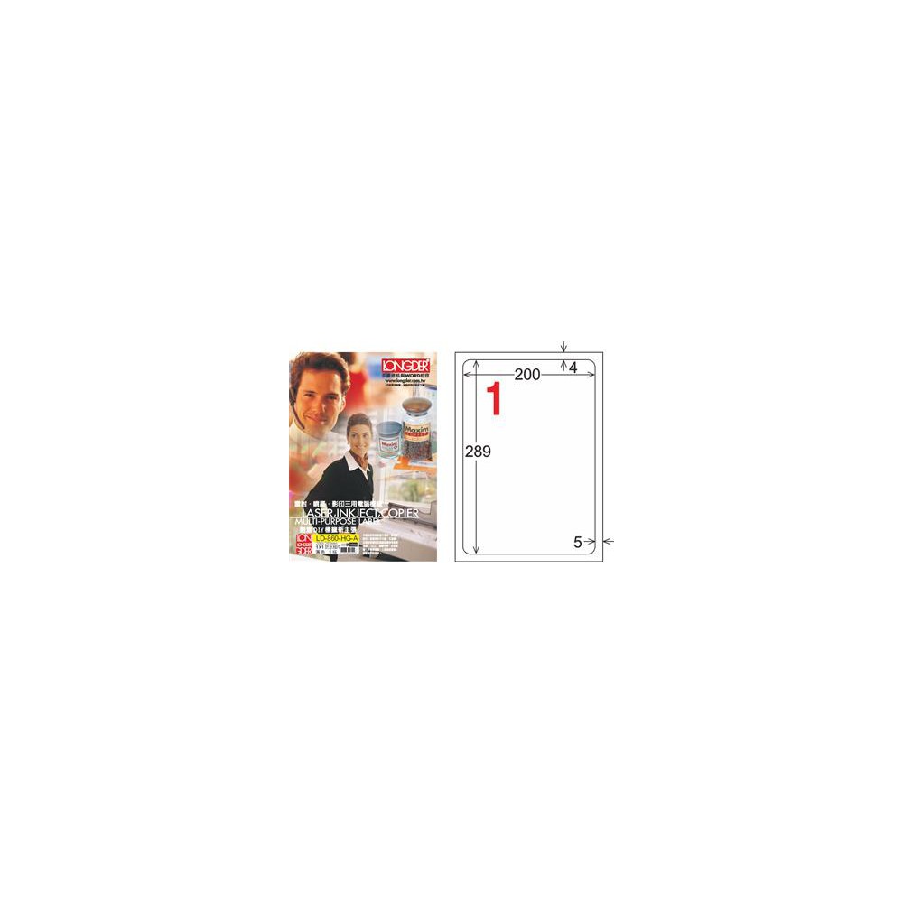 龍德 LD-860-HG-A A4三用電腦標籤 亮面防水相片噴墨材質 白色 289x200mm 1格 105 大張