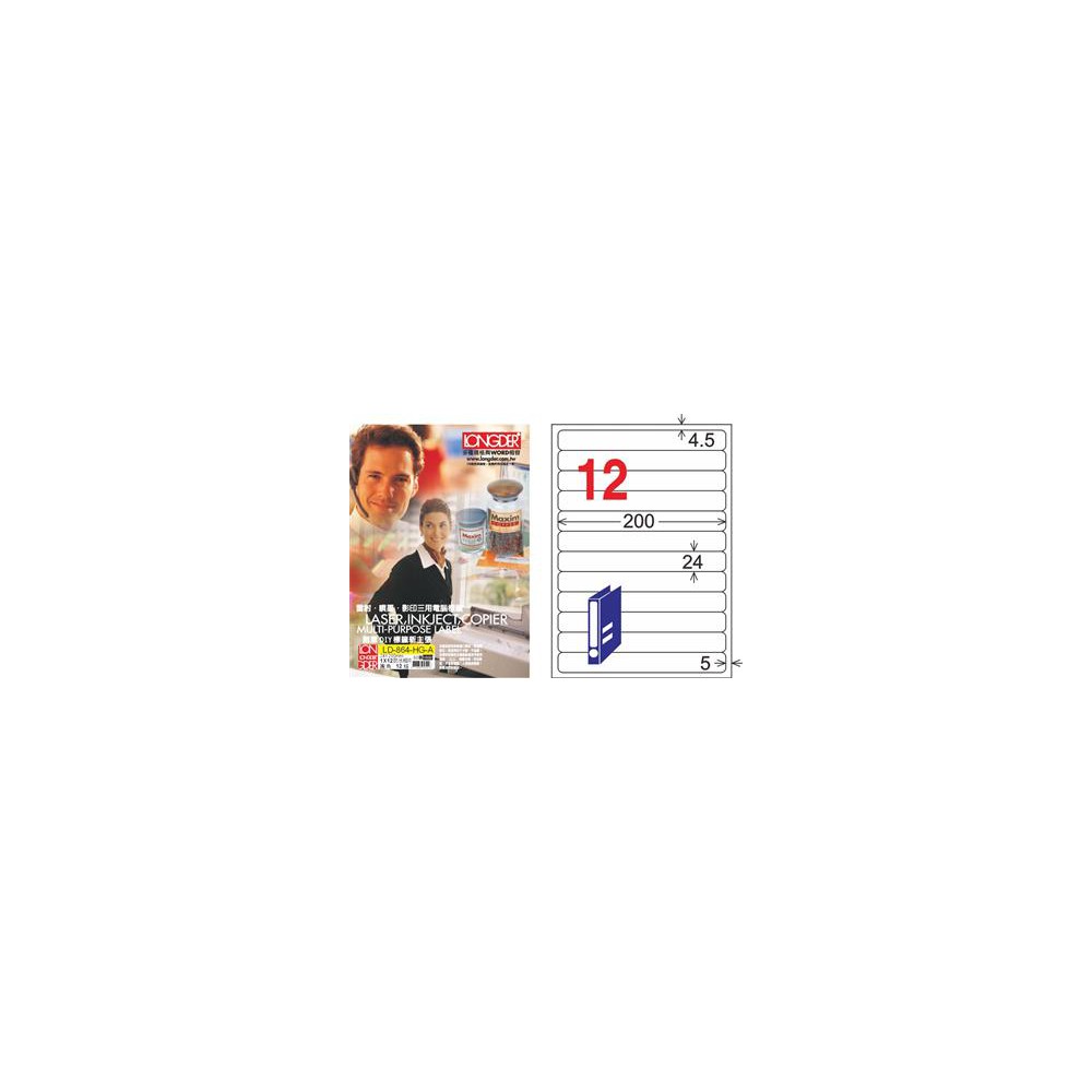 龍德 LD-864-HG-A A4三用電腦標籤 亮面防水相片噴墨材質 白色 24x200mm 12格 105 大張