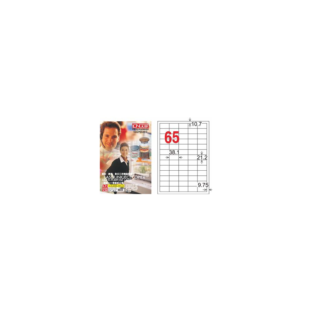 龍德 LD-806-HG-A A4三用電腦標籤 亮面防水相片噴墨材質 白色 21.2x38.1mm 65格 105 大張
