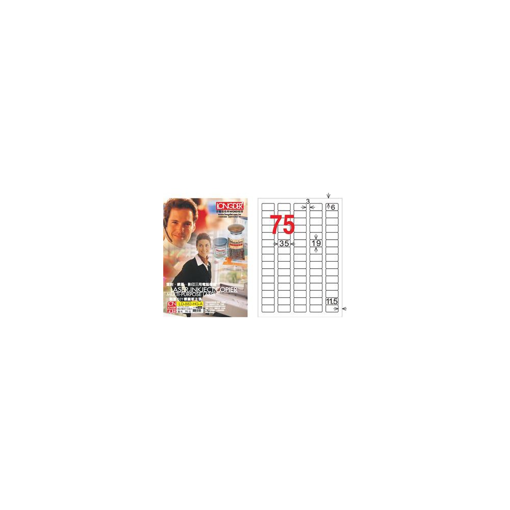 龍德 LD-882-HG-A A4三用電腦標籤 亮面防水相片噴墨材質 白色 19x35mm 75格 105 大張