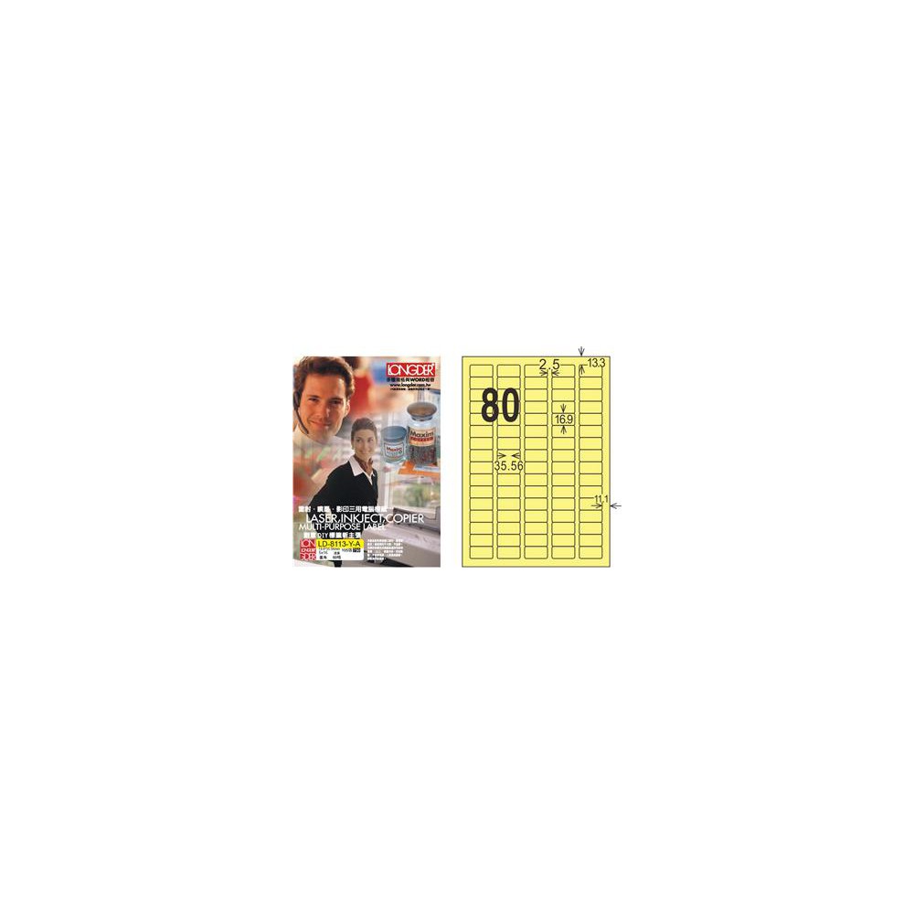 龍德 LD-8113-Y-A A4三用電腦標籤 淺黃色 16.9x35.56mm 80格 105 大張
