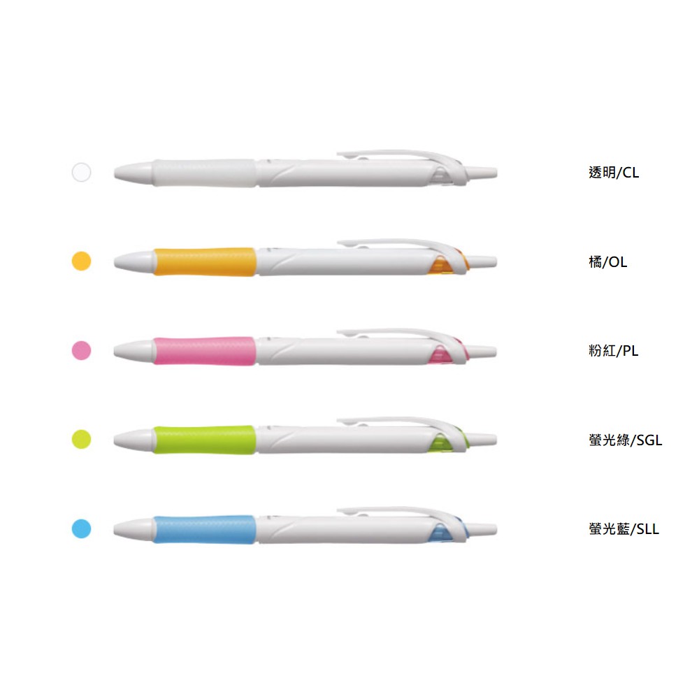 ✦ 筆桿顏色:透明、橘、粉紅、螢光綠、螢光藍。