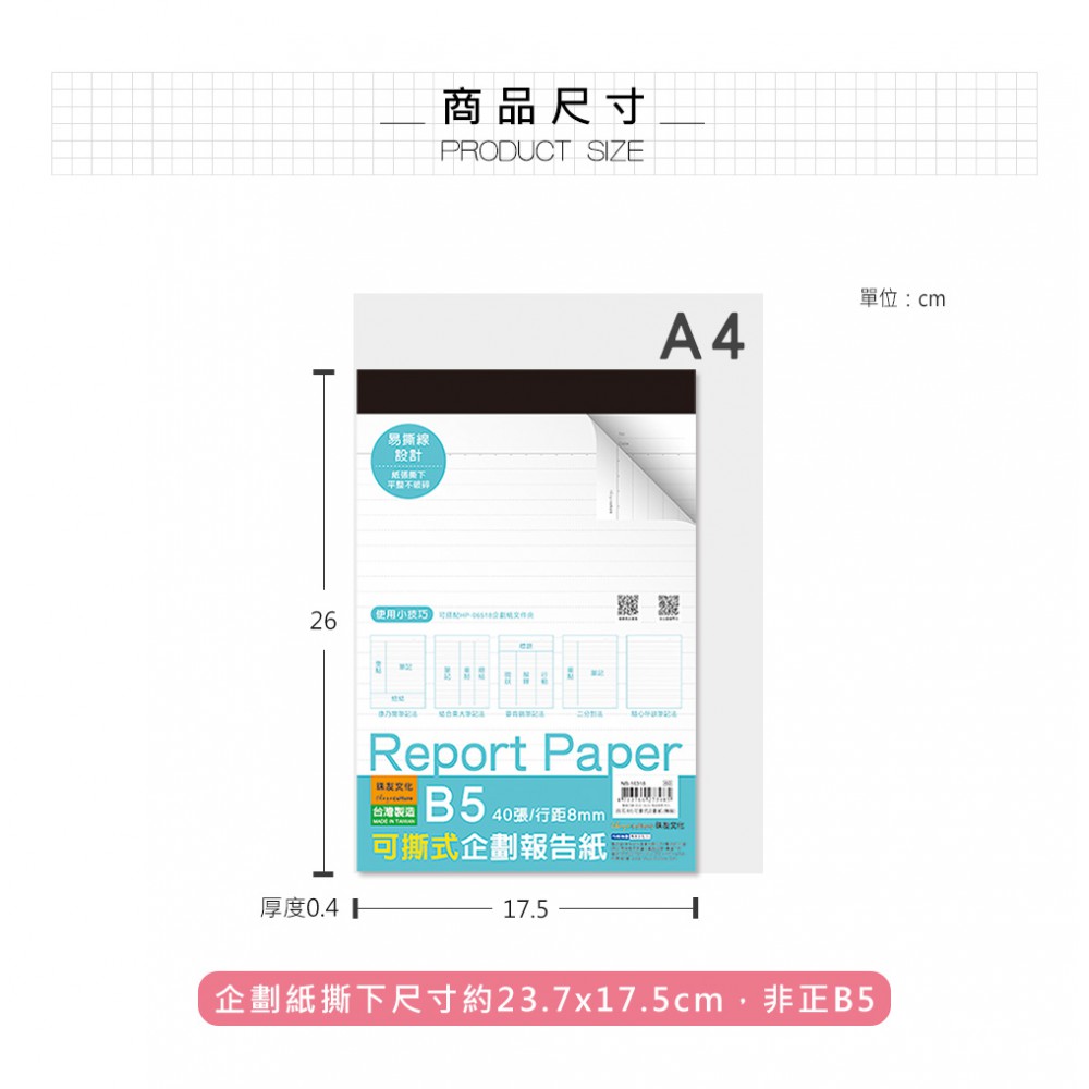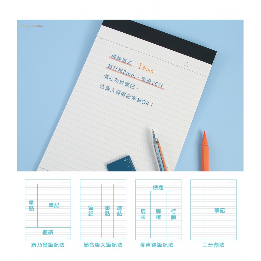 橫線格式,每行高8mm、每頁26行,適用各種筆記...