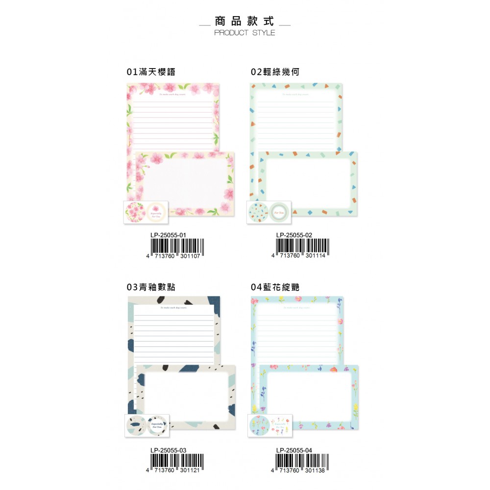 商品有4種款式 同款式信封、信紙、封口貼紙3合1...