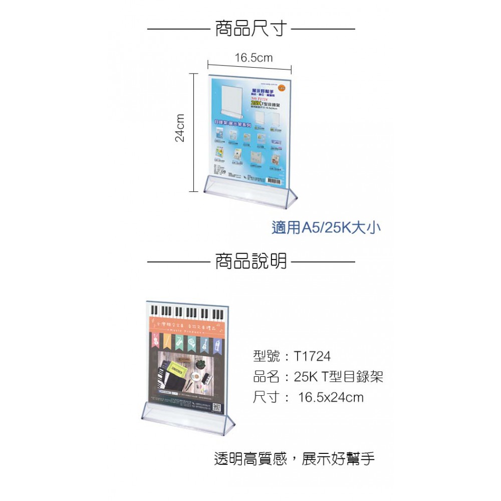 WIP 聯合 25K / A5 倒 T 型目錄架 T1724 適用紙張 14.85x21cm