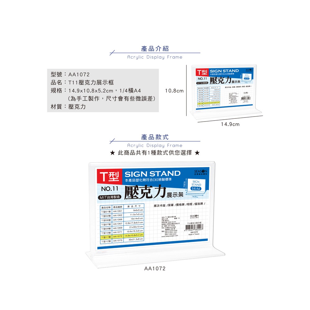 T型壓克力展示架AA1071 | AA1071 | 10.6 | 15.2 | 直式 | |