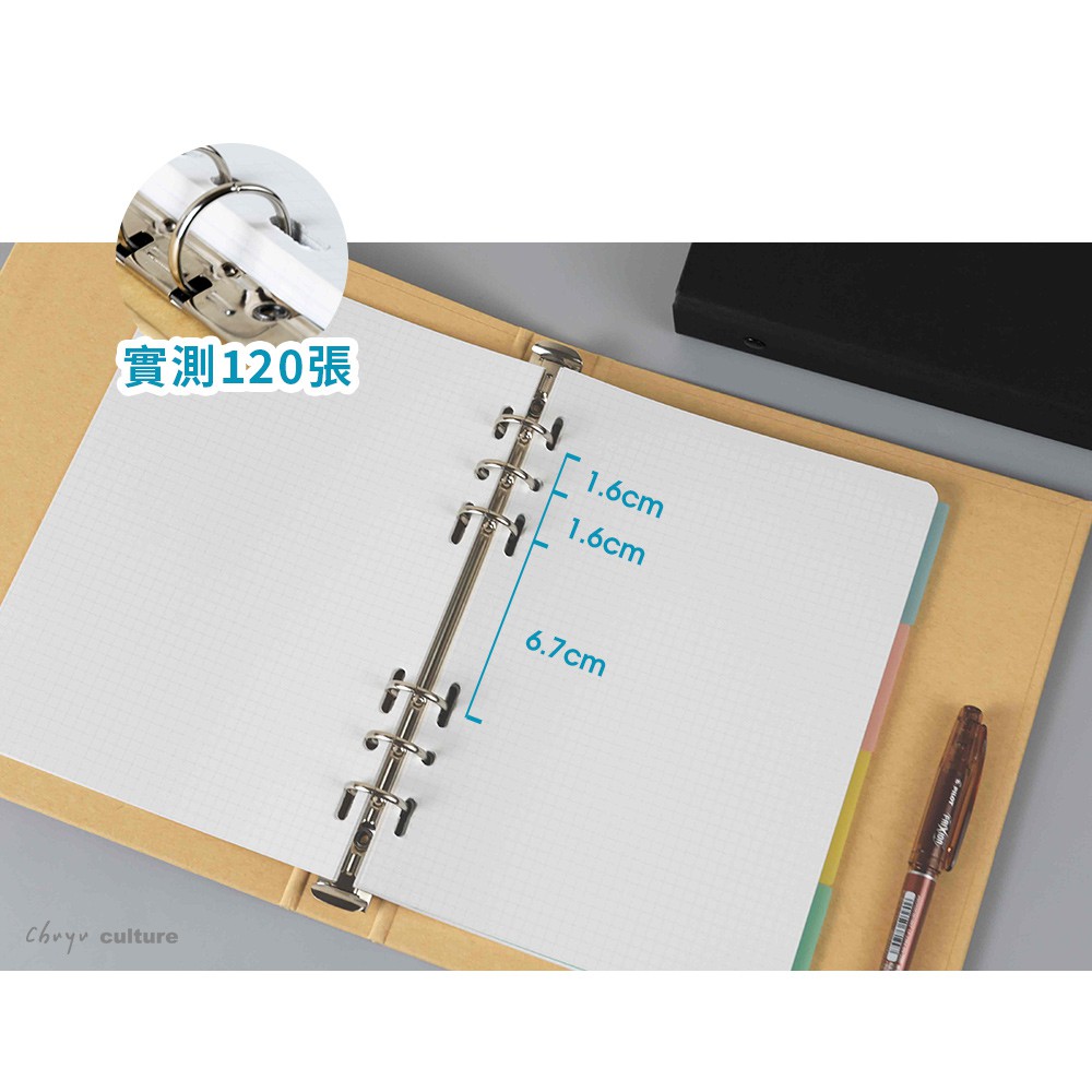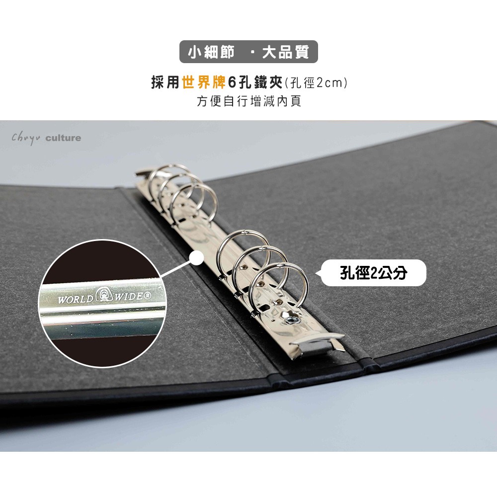採用世界牌圓形鐵夾,孔徑2cm 約可裝120張活頁紙...