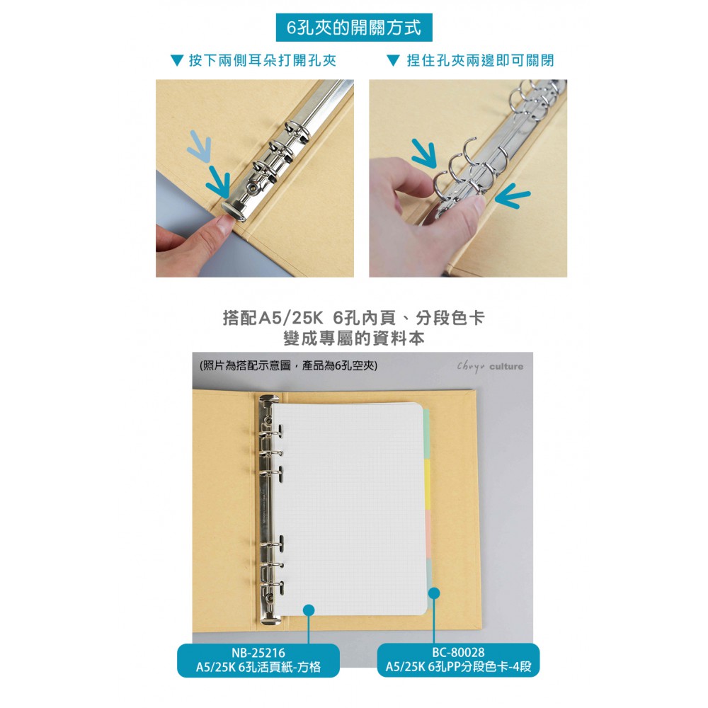 珠友 A5/25K 6 孔筆記空夾(鐵夾)