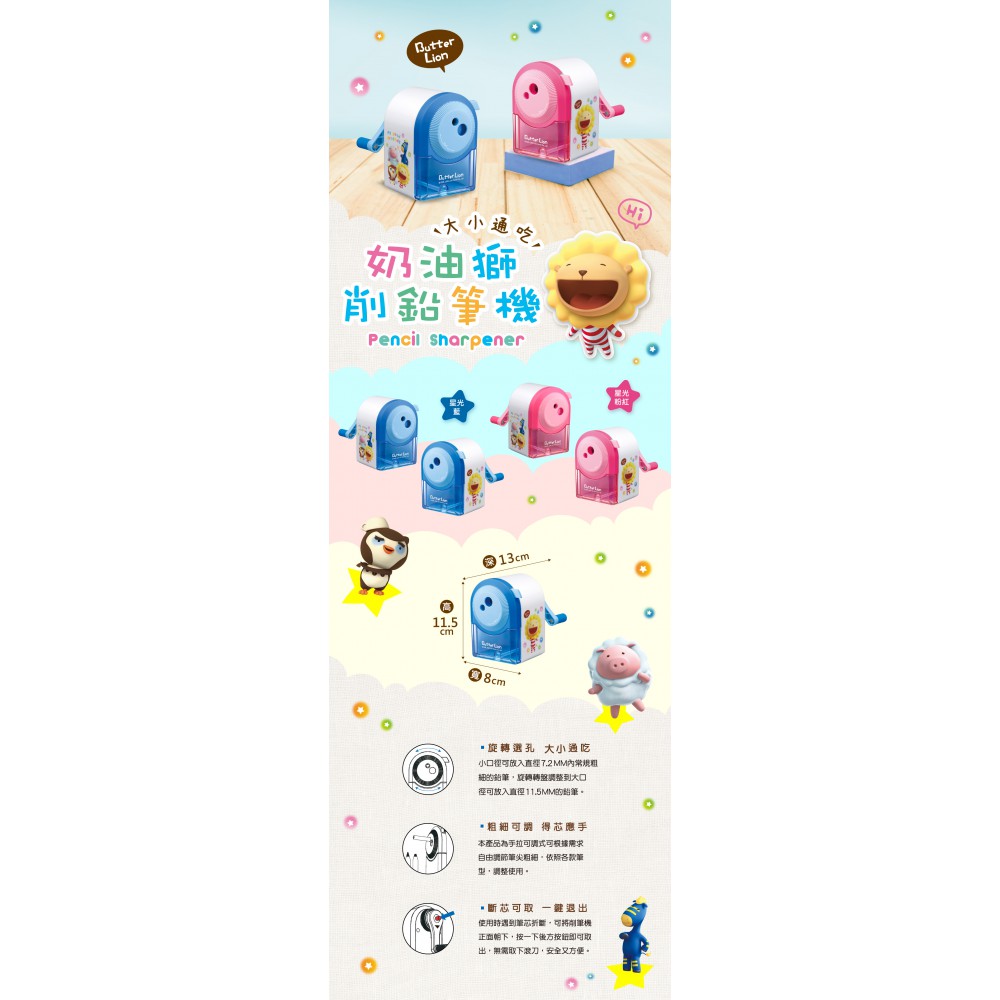 雄獅 星光奶油獅大小通吃削鉛筆機 PS407