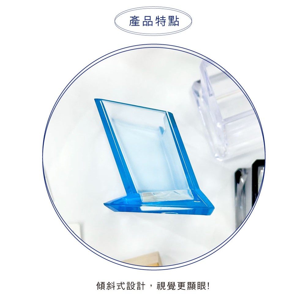 § 容量大,可擺放多張名片。§ 一體成型設計,耐用度高。§ 清澈的透明度,名片清晰可見。§ 規格:10x6x5cm,3種款式。§ 台灣設計製造,品質有保障。§ 本產品塑化劑符合CNS檢驗標準。