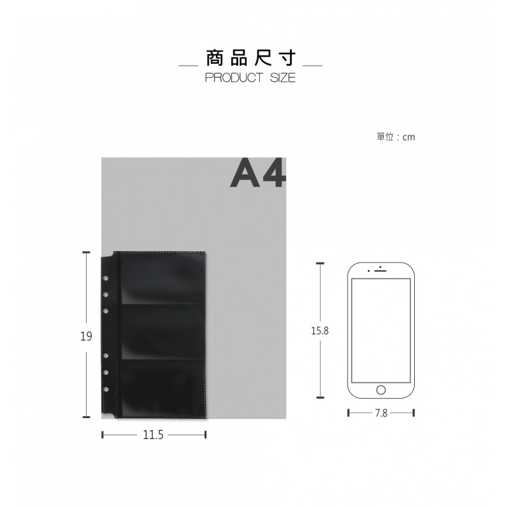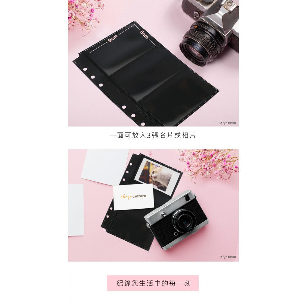 黑內頁效果設計 一頁3格,由左方置入,資料不易掉出