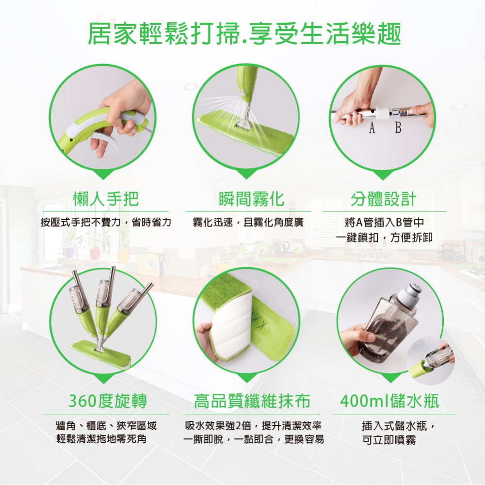 360度噴射無死角 免換水 免擰乾 省時又省力
