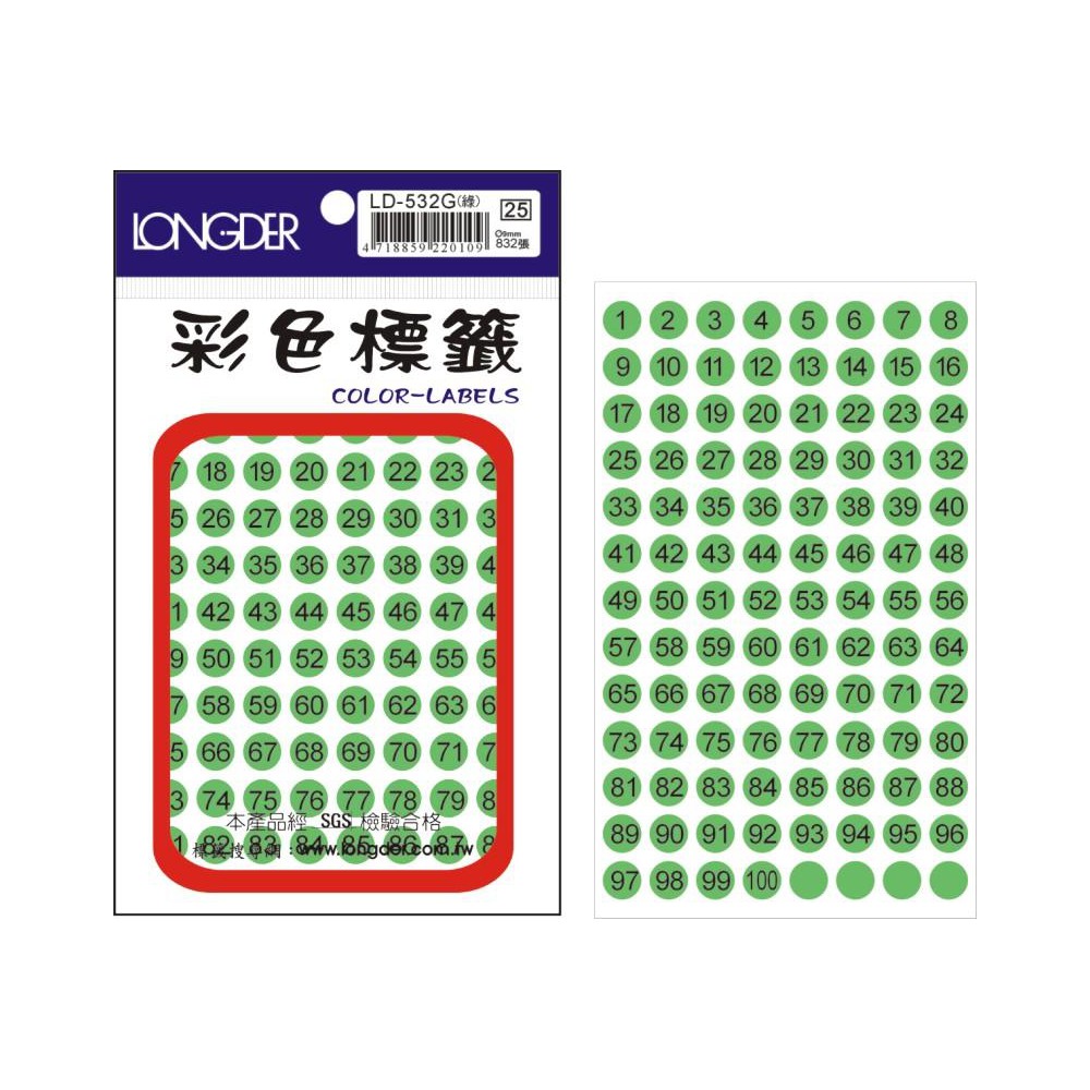 龍德 LD-532G(螢光綠) 彩色標籤...