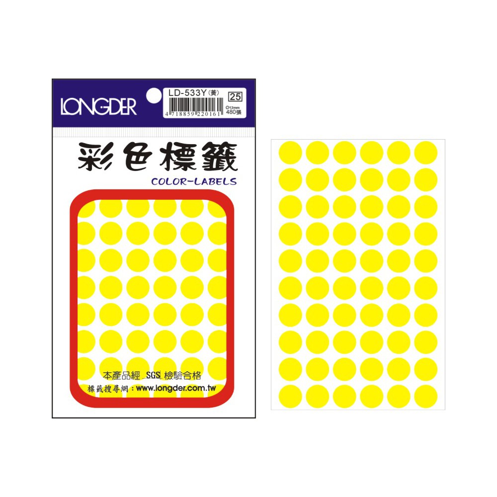 龍德 LD-533Y(螢光黃) 彩色標籤...
