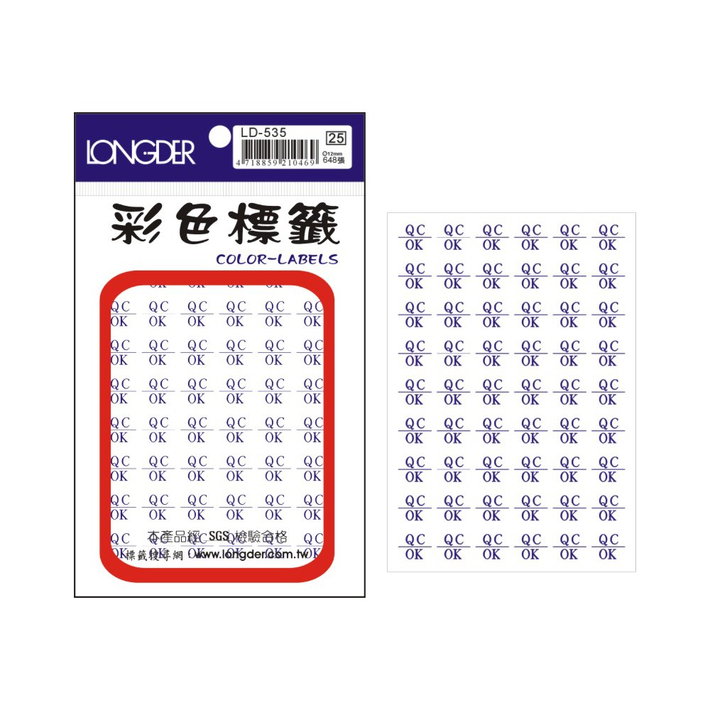 降價! 龍德 LD-535(OK) 彩色標籤 白銅版材質 藍色 12mm 54格 648張/包 查看大圖