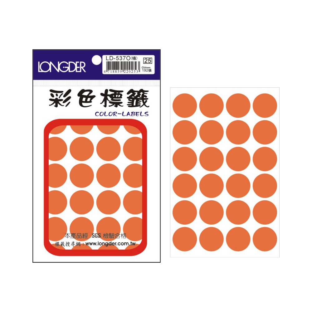 龍德 LD-537O(螢光橘) 彩色標籤...