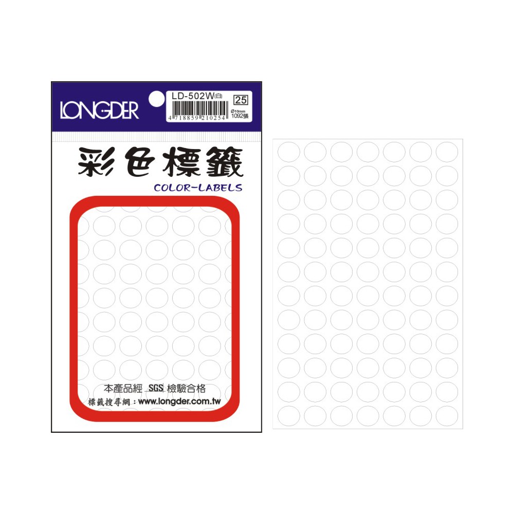 龍德 L-502W(白)10MM圓點 彩色標籤...