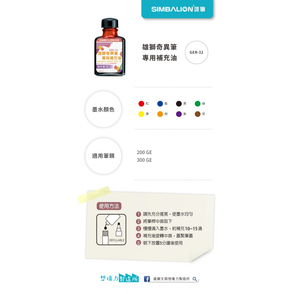 適用筆類:NO.200、NO.300奇異筆補充專用