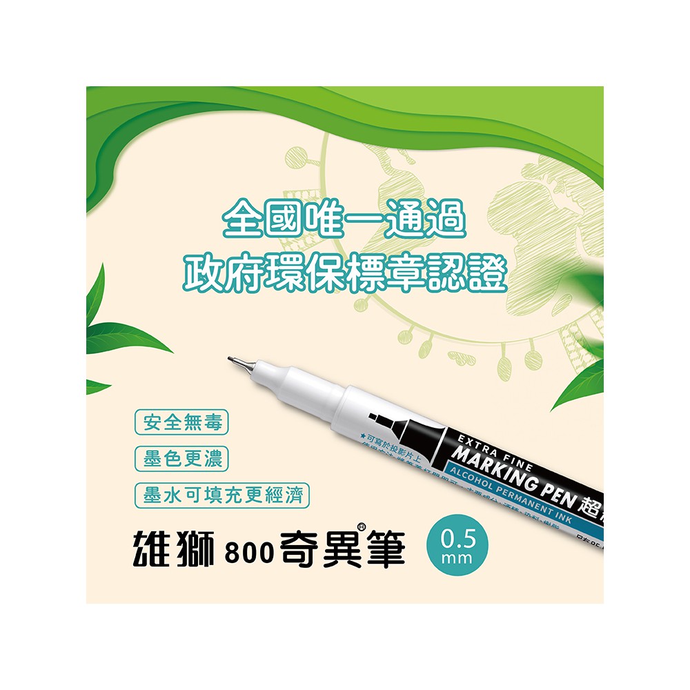★黑色雄獅800超細奇異筆,榮獲政府環保認證標章。