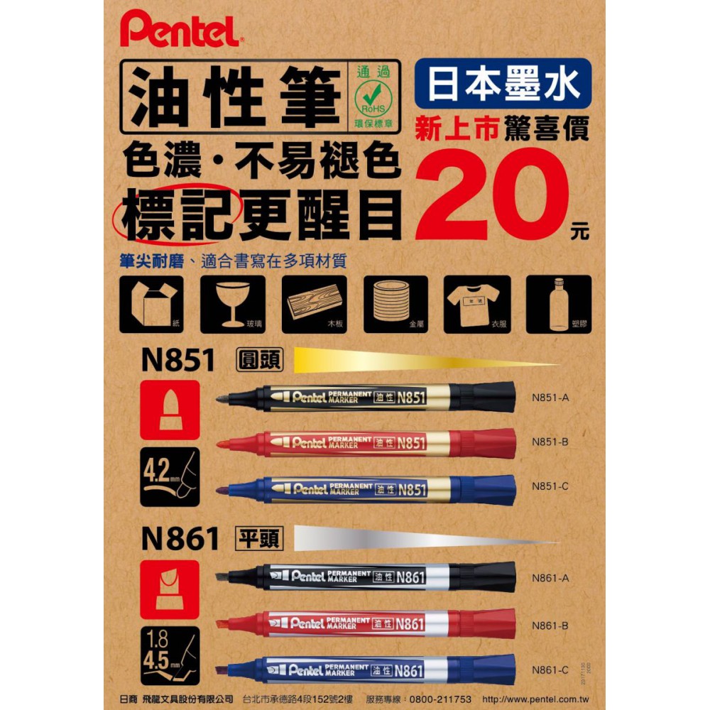 墨水濃度高 不易褪色 無毒無臭 可用於金屬.玻璃.木頭等材質