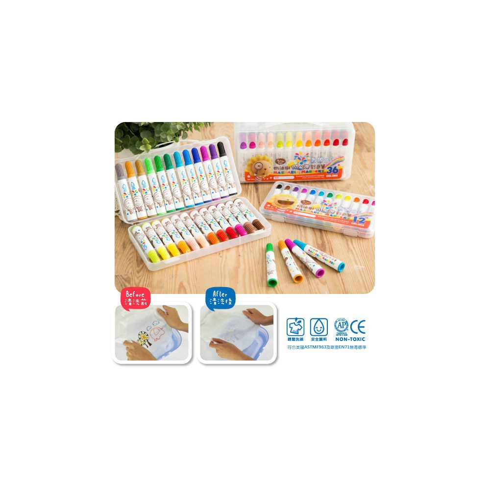 採用可水洗無毒顏料,如果不小心畫到皮膚、衣服、床單等等,只要用清水、肥皂或一般洗衣劑就能輕鬆洗淨,怎麼畫都不怕弄髒喔!