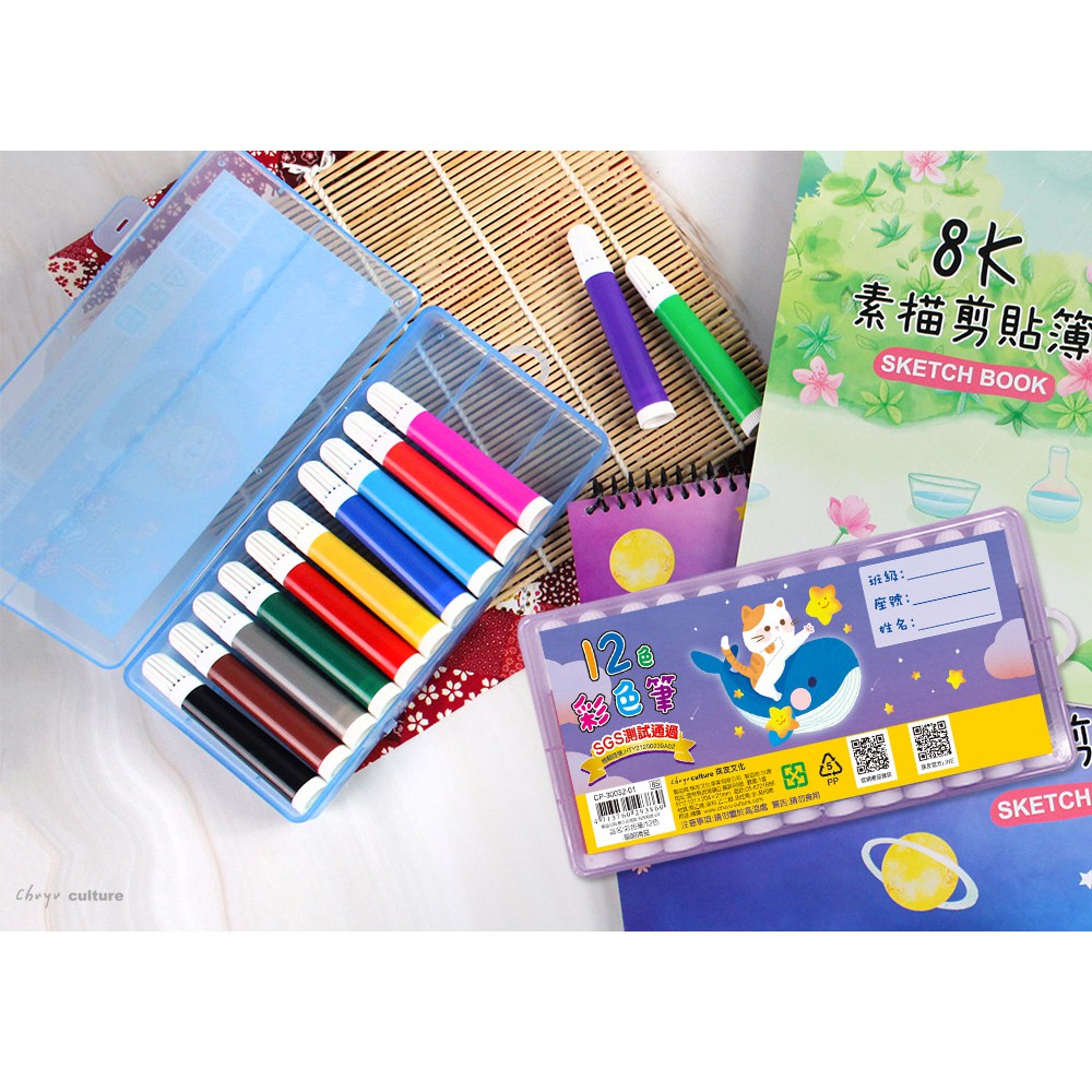 珠友 台灣製-彩色筆/12 色/水性彩色筆 隨機出貨
