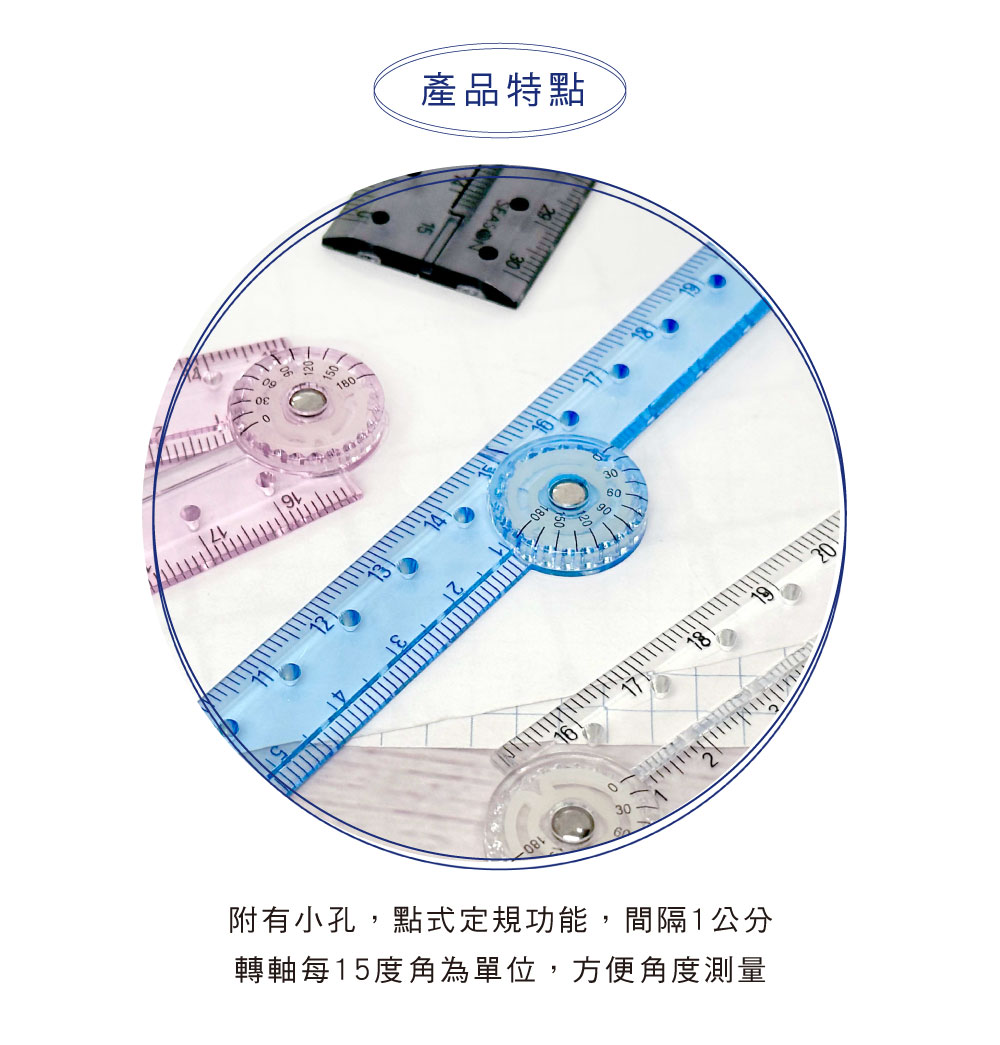 § 轉軸可作為量角器使用。