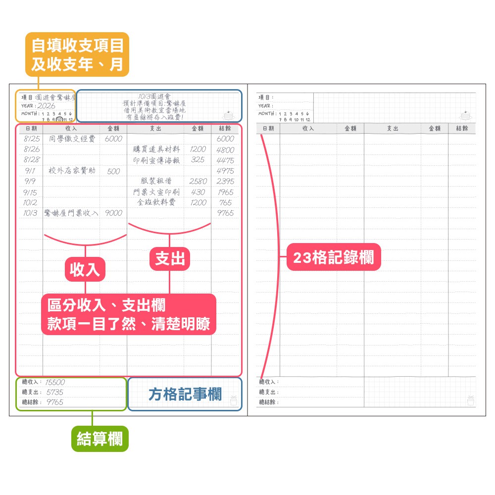 A5/25K活動收支本/自填收支項目+日期/記帳本
