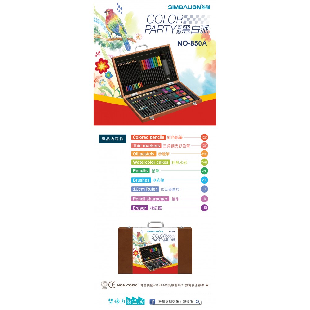 內含:2支水彩筆、24色粉餅水彩24色粉蠟筆、12色色...