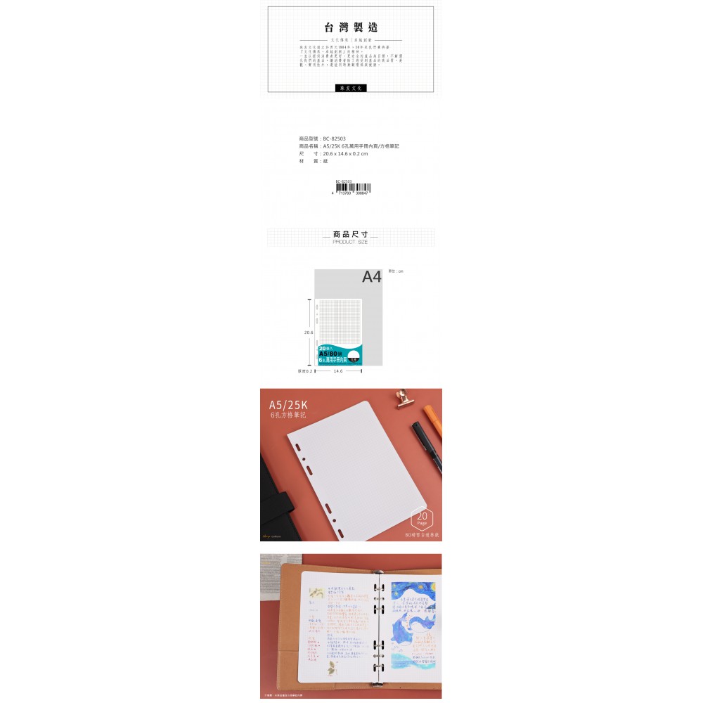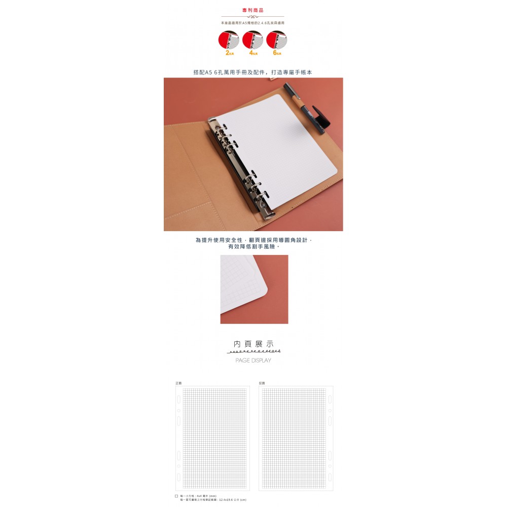 珠友 A5/25K 6 孔萬用手冊內頁/方格筆記/手帳內頁