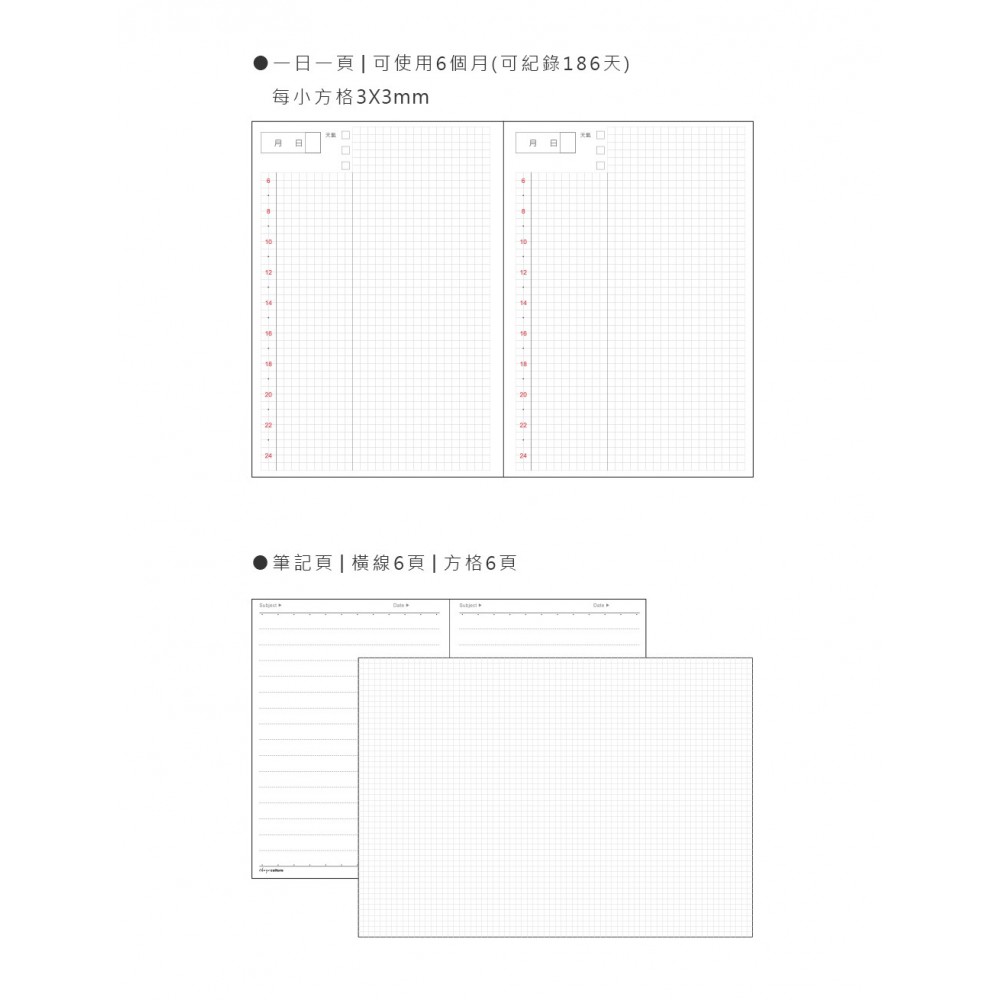 自填式方格1日1頁/186天份日期...