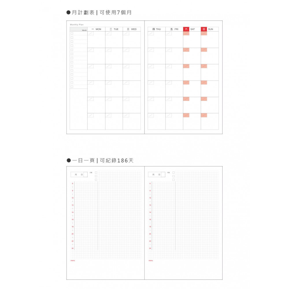 自填式方格1日1頁/186天份日期...