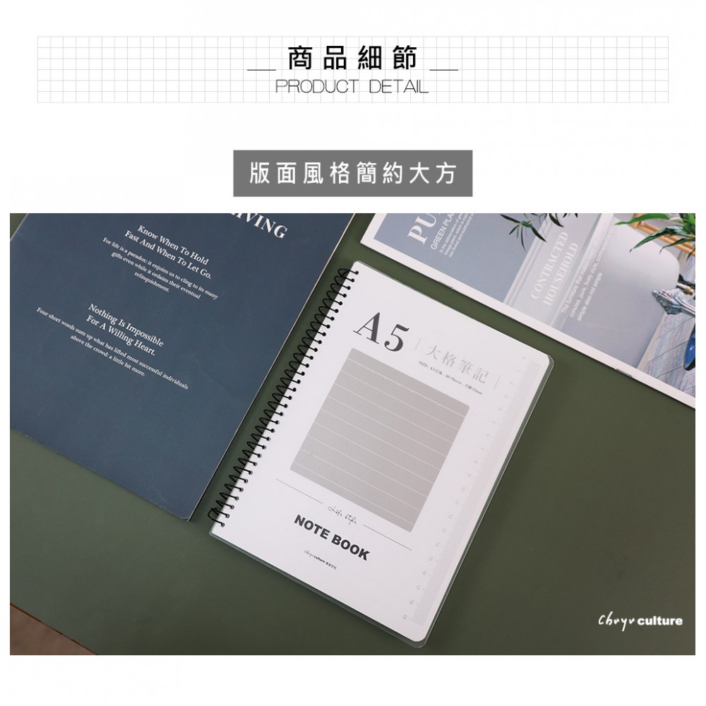 珠友 A5/25K 圈裝透明 PP 筆記(大格) 大格橫線內頁/80 張