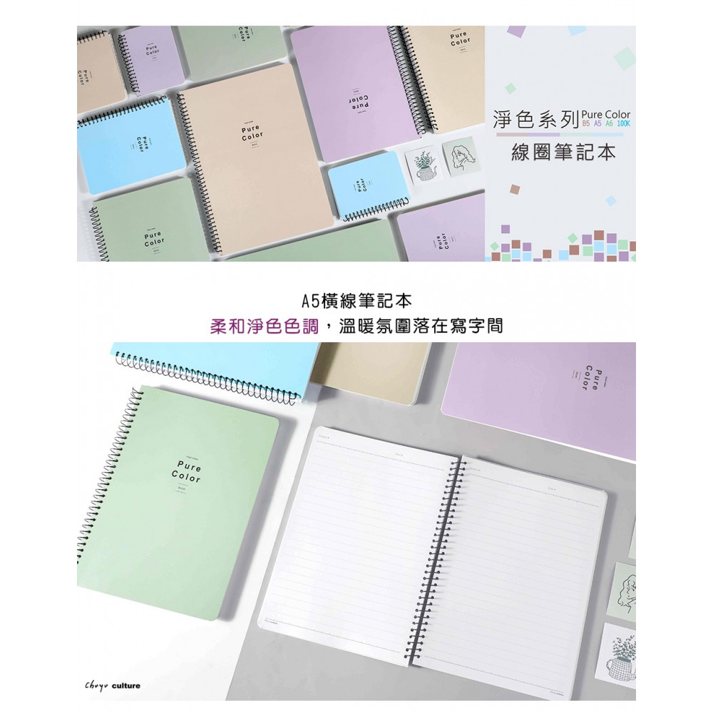 柔和的淨色色調 80張橫線筆記內頁...