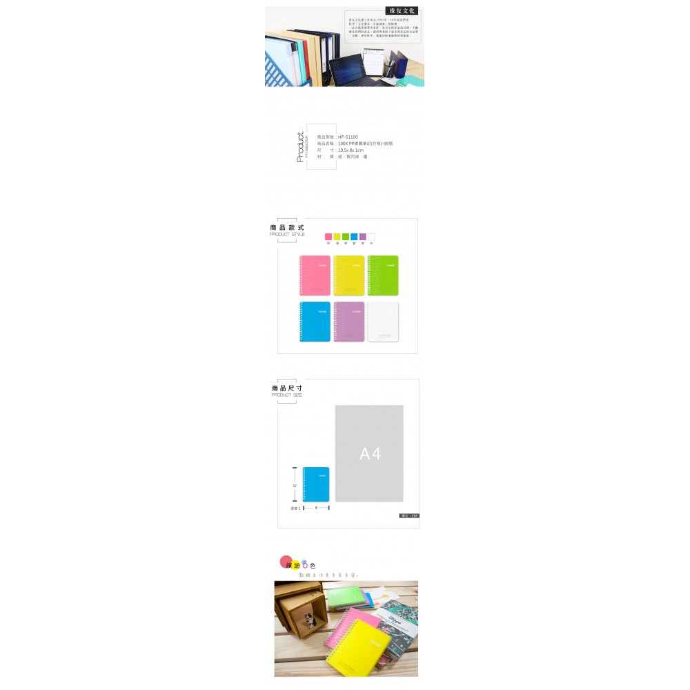 珠友 100K 線圈筆記/60 度翻頁(方格 3X3mm)/90 張 粉