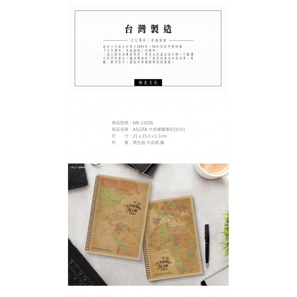 珠友 A5/25K 牛皮線圈筆記(空白)/80 張 隨機