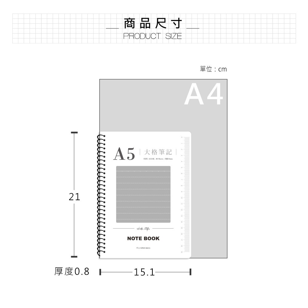 珠友 A5/25K 圈裝透明 PP 筆記(大格) 大格橫線內頁