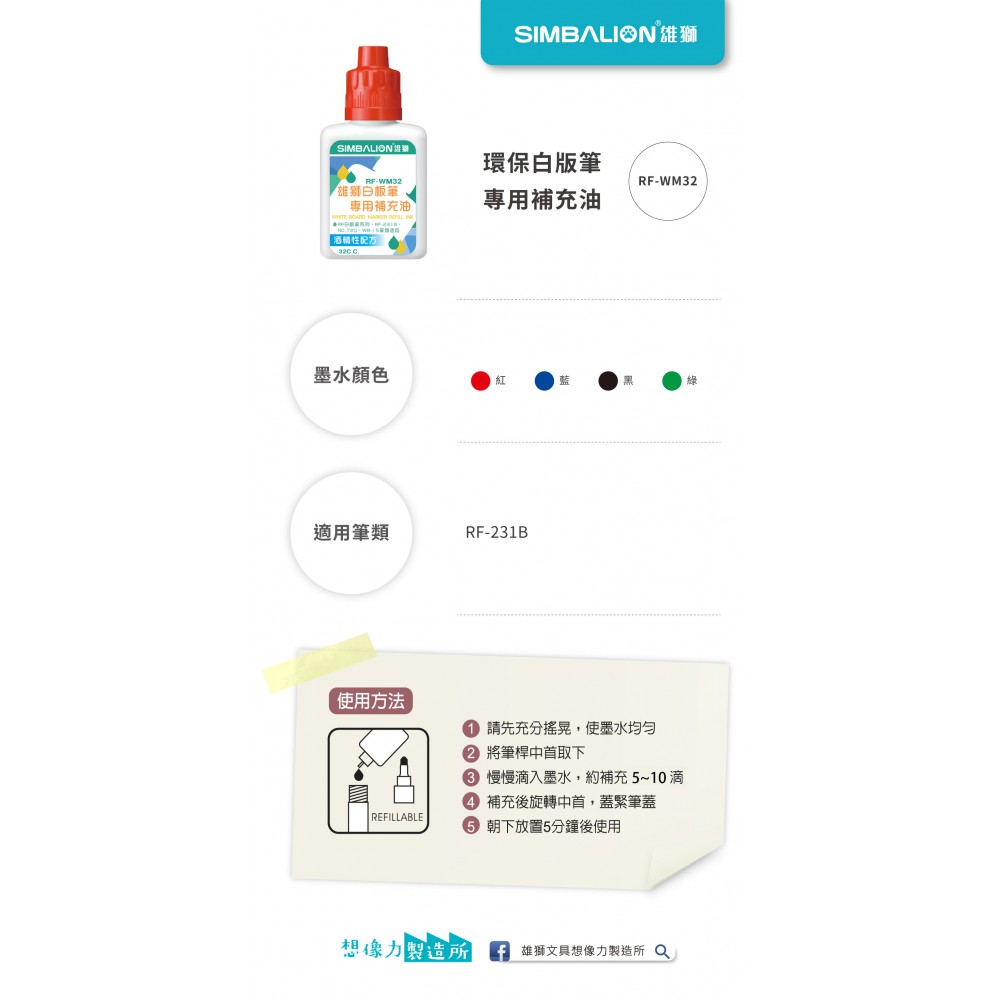 適用筆類:RF231B、NO.720白板筆補充專用