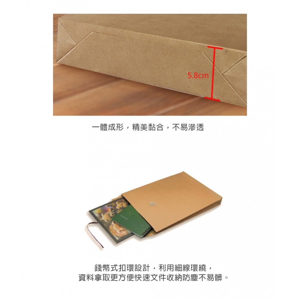 採用150磅進口赤牛皮紙 立體設計,容量更大...