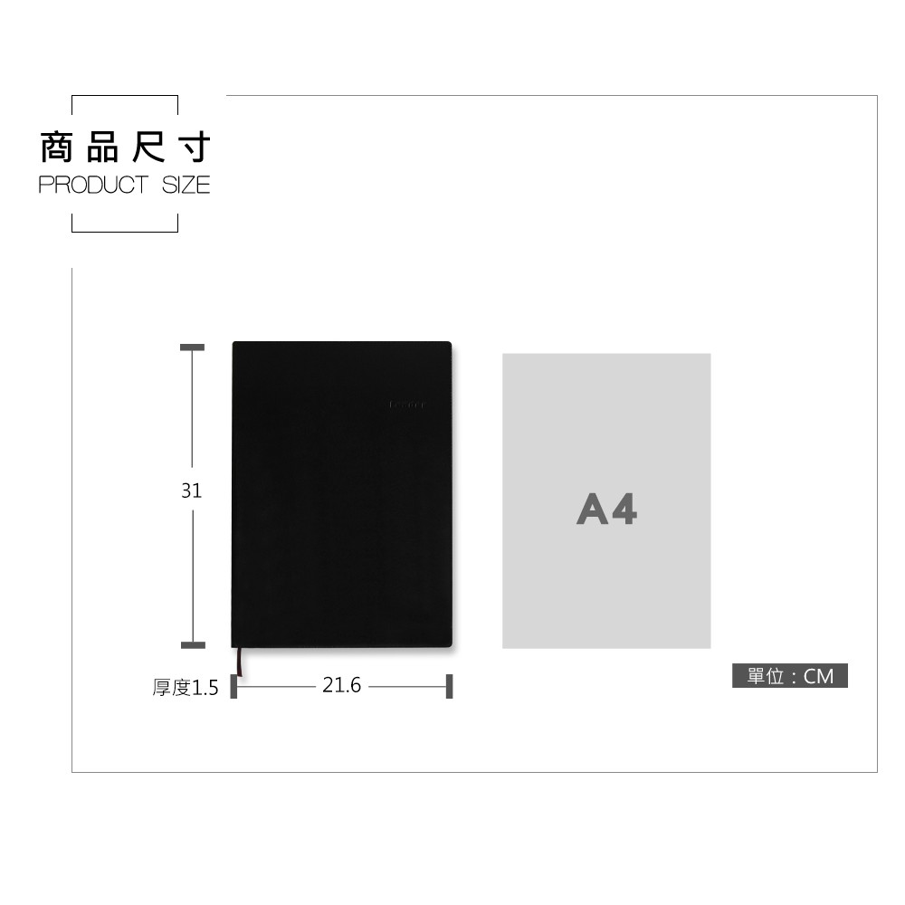 • 橫線設計,內頁每行上下寬度8.5mm,內頁行數31行