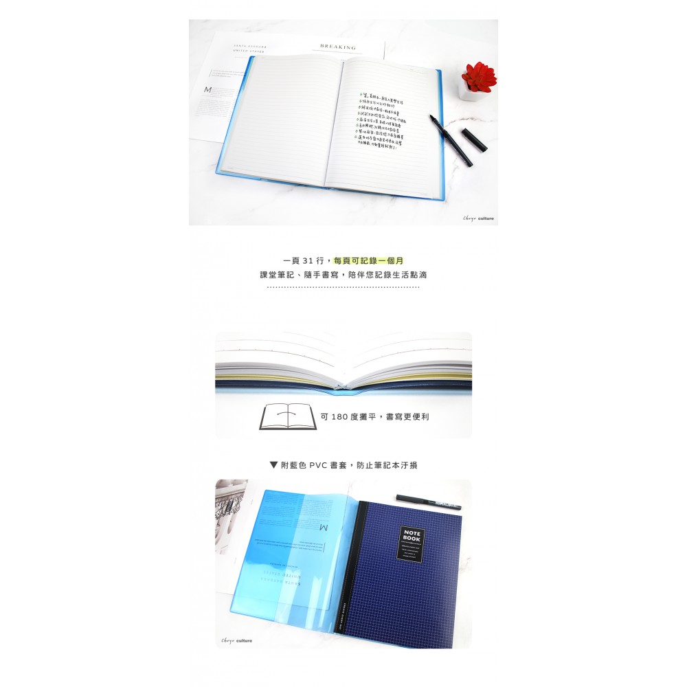 珠友 A4/13K 藍色透明膠皮書套加厚筆記/藍格橫線簿(橫線)-90 張