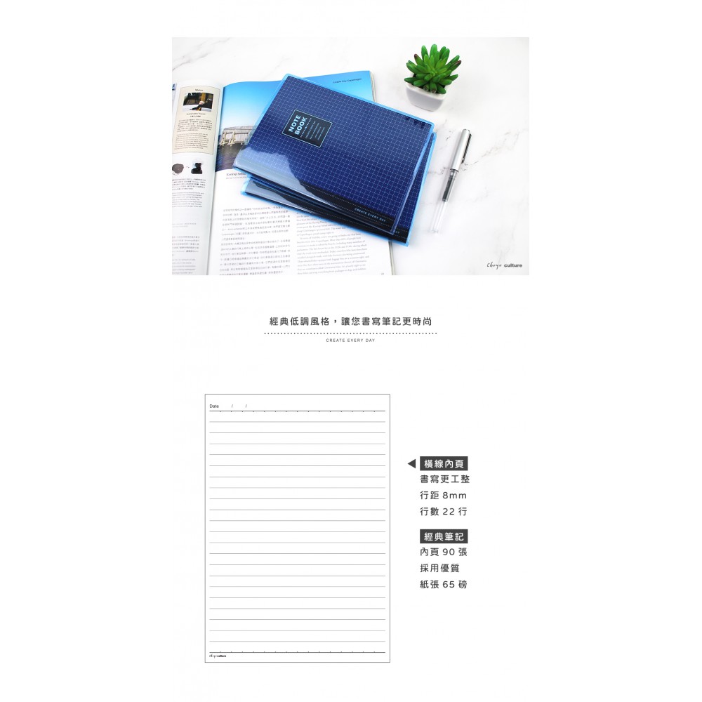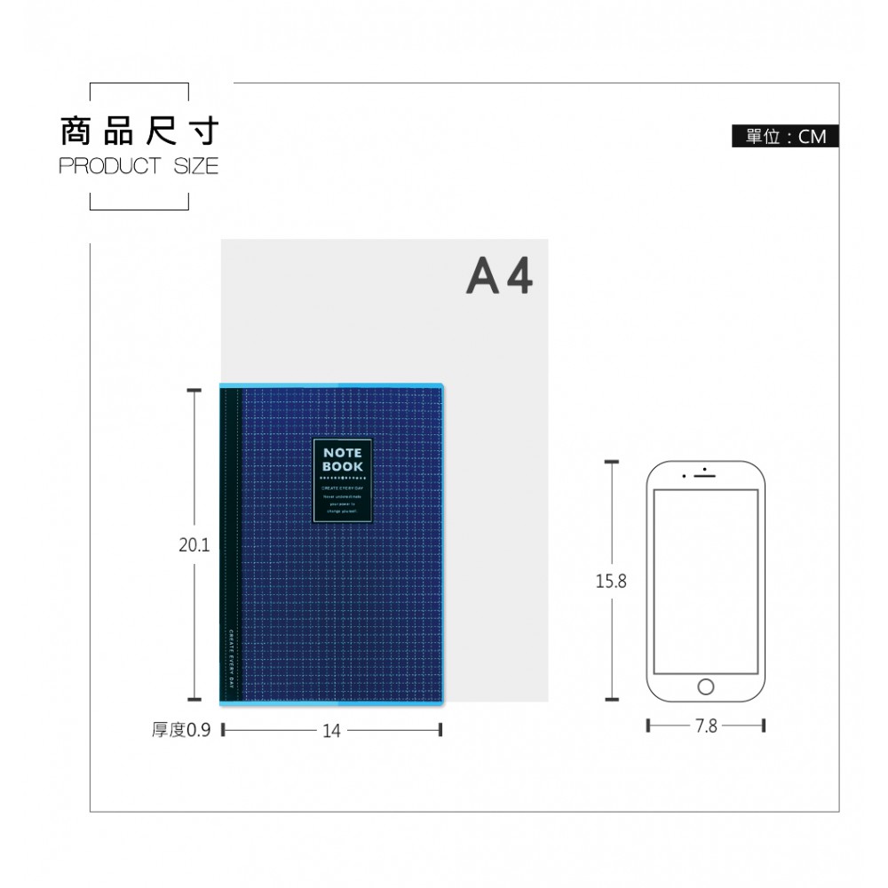 珠友 A5/25K 藍色透明膠皮書套加厚筆記/藍格橫線簿(橫線)-90 張