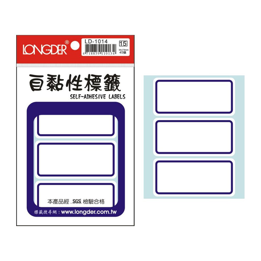 降價! 龍德 LD-1014 自黏性標籤 白模造材質 白色 34x73mm 3格 45張/包 查看大圖
