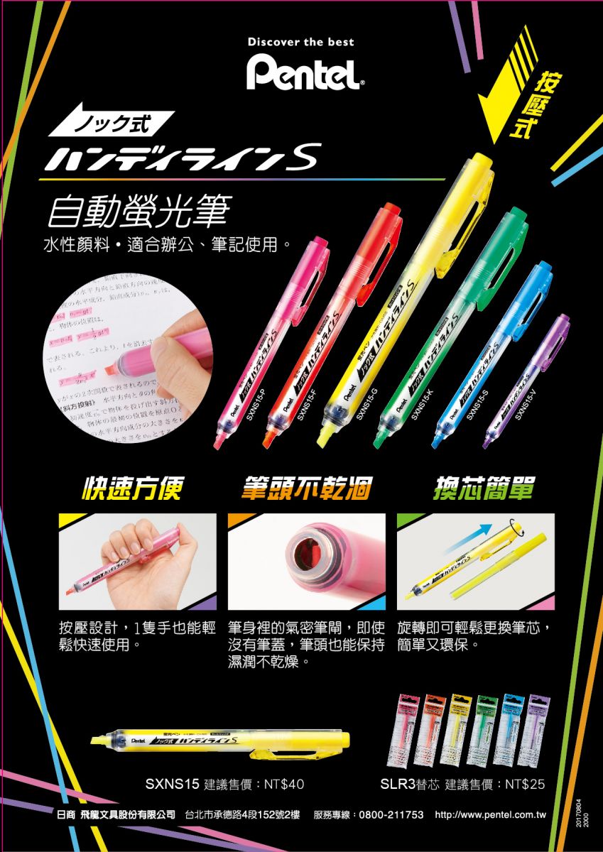 按壓式自動螢光筆按壓即可馬上使用、超順手...