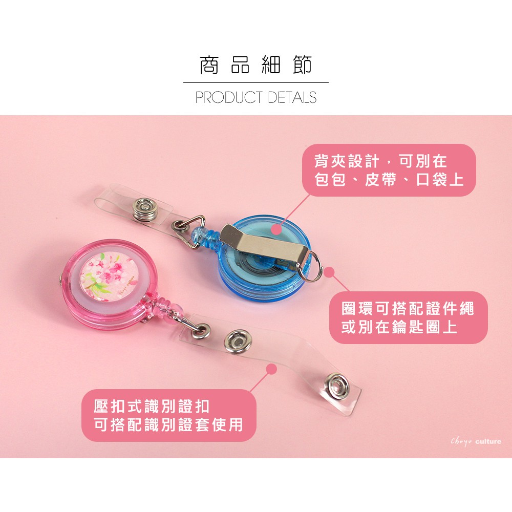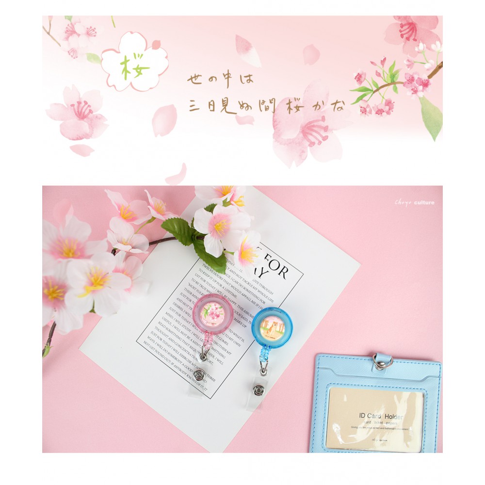 珠友 鋼繩伸縮吊環/票卡拉環-戀戀粉櫻