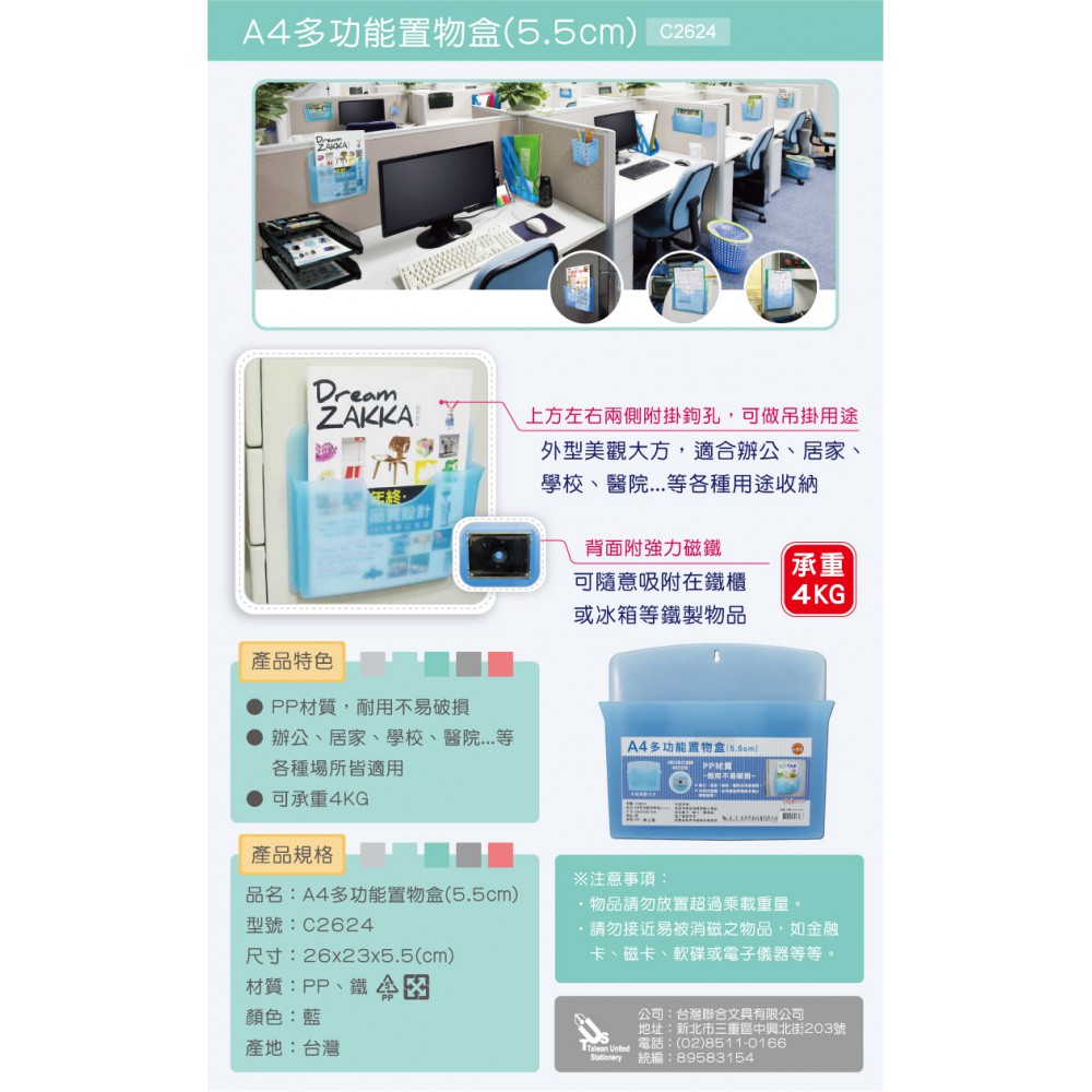 ▶背面附四顆磁鐵,可承重4kg