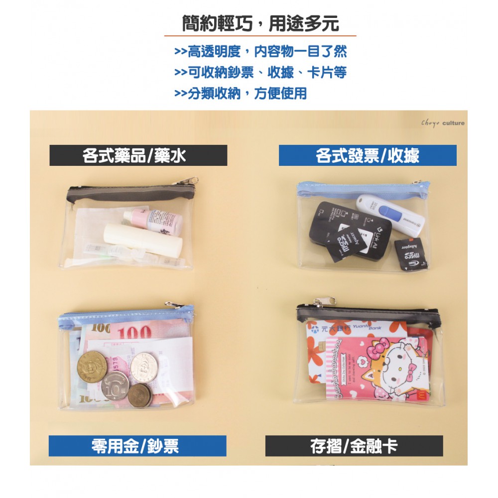 高透明材質,一目了然免翻找 可放入各式發票、零錢、卡片等